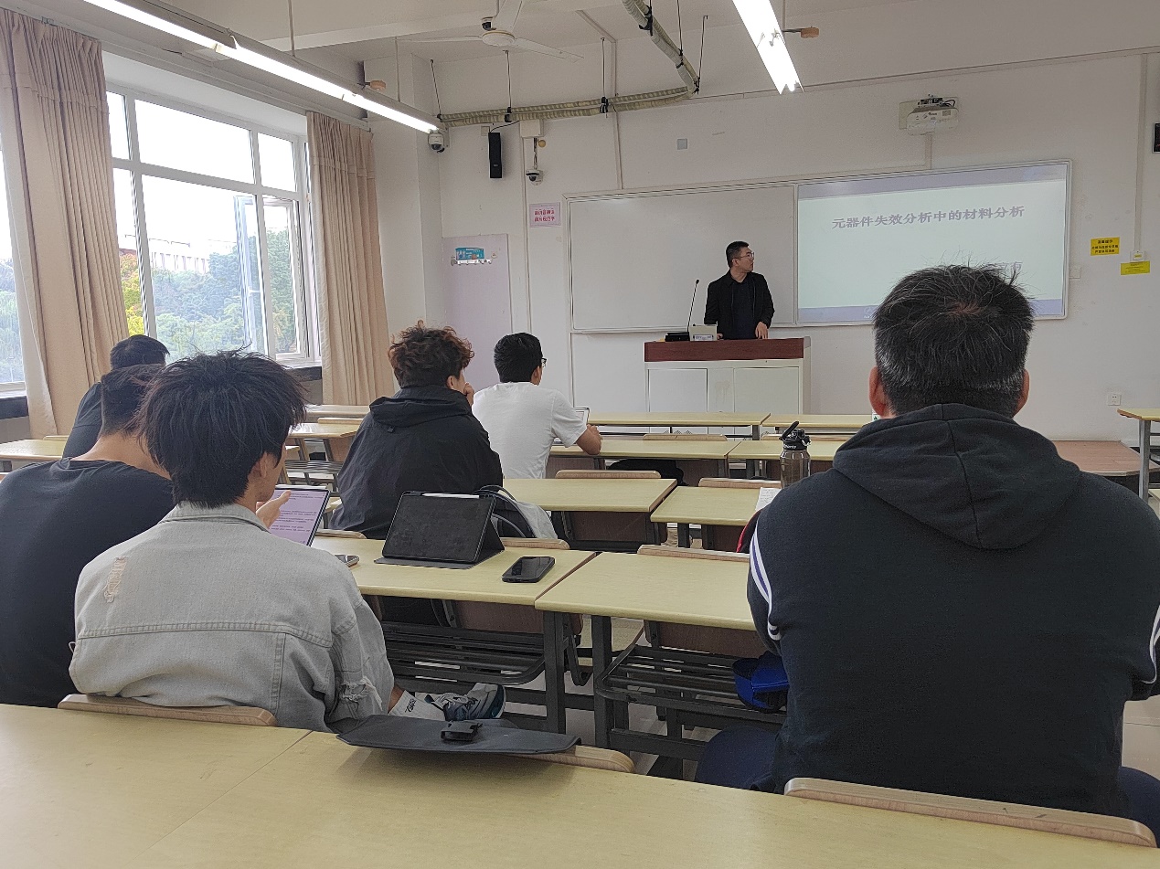 2025年10月20日下午,材料科学与工程学院《材料失效分析》课程邀请上海航天技术基础所赵立有主任,为材料科学与工程专业的同学们带来了一堂产教相融的“元器件失效分析中的材料分析”讲座。