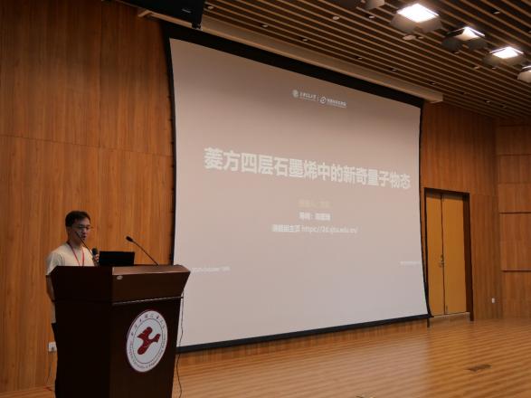 论坛特邀上海交通大学博士生刘凯、张智淳作大会报告。刘凯同学的研究方向是石墨烯的量子物态。他的科研履历硕果累累,不仅以第一作者在《Science》等国际顶尖期刊上发表文章,还独立获得了国家自然科学基金青年学生项目的资助,并入选了中国科协青年人才托举工程。他以“菱方四层石墨烯中的新奇量子物态”为题,系统阐述了低维材料量子调控领域的突破性进展。