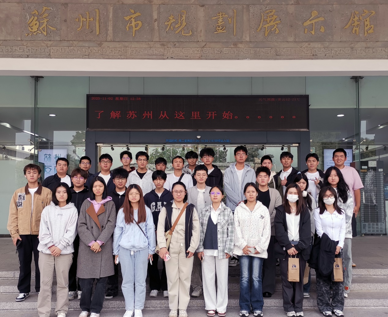 一座古典与现代交融的城市,一次专业与产业对接的旅程,正在重塑这群大一新生的专业认知和职业规划。2025年11月1-2日,上海工程技术大学30位大一学生,在苏州进行了为期两天的走访研学。学生们站在苏州城市发展规划馆里,思考着这座千年古城在新时代的发展方向;漫步拙政园与山塘街,体会传统园林建筑中材料的运用智慧;在苏州博物馆,沉浸式体验上下五千年,苏州政治、经、社会生活、文化艺术的发展变迁;深入苏州市大族激光科技有限公司,感受现代先进制造的力量。这场跨越课堂边界的学习,让材料与艺术的无限可能在学生们心中生了根。