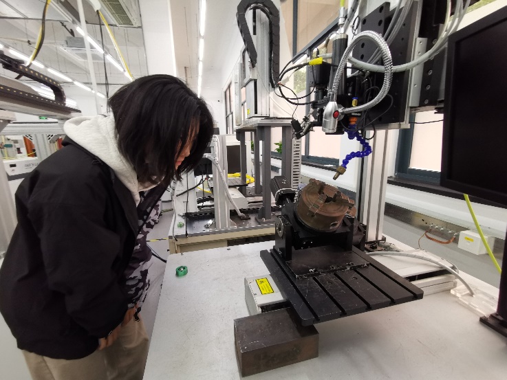 在生产车间里,学生们第一次亲眼见到激光切割、焊接、打标等先进技术如何运用于金属材料加工。企业技术负责人详细介绍了一种特殊合金材料在激光加工过程中的性能表现与变化规律。