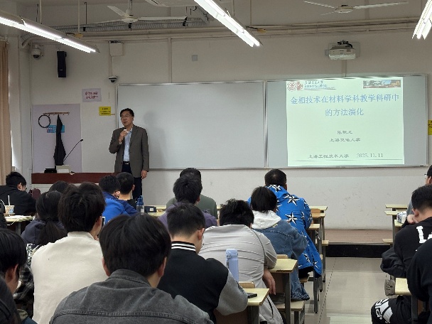 2025年11月11日上午,在教学楼B103教室,上海交通大学材料科学与工程学院陈秋龙副教授,携《金相技术在材料学科教学科研中的方法演化》主题报告,为我校材料科学与工程专业2022级学子,带来一场兼具理论深度与实践指导的学术分享。作为深耕金相技术教学与科研多年的专家,陈教授从金相技术的发展脉络切入,用材料微观世界的探索之眼为这项技术定位。他结合自身实验教学经验和科研积累,分享了大量精彩的微观组织图片,为同学们解读微观组织的内涵,讲述这些微观组织背后的制样故事,总结各类材料金相制样的特点,可能遇到的困难和解决办法,强调在取样、切割、镶嵌、研磨抛光、腐蚀、分析的制样环节中,每一步都对最终的观察效果具有重要的意义。还结合纯锌、6061铝合金等实例,说明不同材料的制样适配方案,让理论知识落地。另外,陈教授还向同学们介绍了国内外金相制样技术和标准的发展,各种先进制样技术、制样材料及设备的发展应用和技巧等等。在最后的交流环节,同学们结合在《材料科学综合实验》课程实践、大学生科研创新训练项目和金相技能大赛中遇到的困惑和问题提问,陈教授逐一解答并分享实用技巧。陈教授的报告增强了同学们对金相检验技术的掌